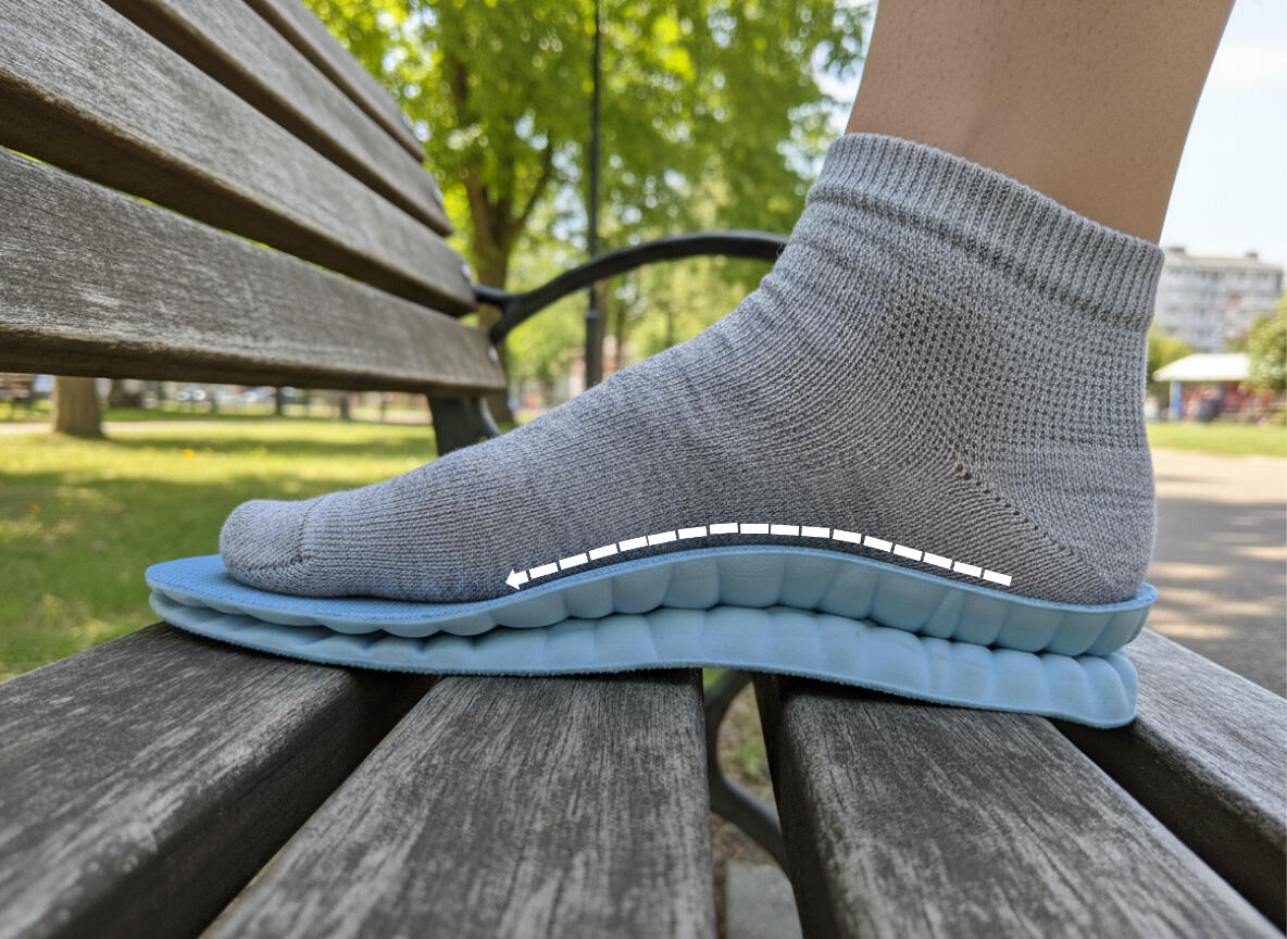 They're made with the same EVA foam podiatrists use in custom orthotics, but pre-formed to fit 90% of foot shapes and the arch support follow's your foot's natural curve.